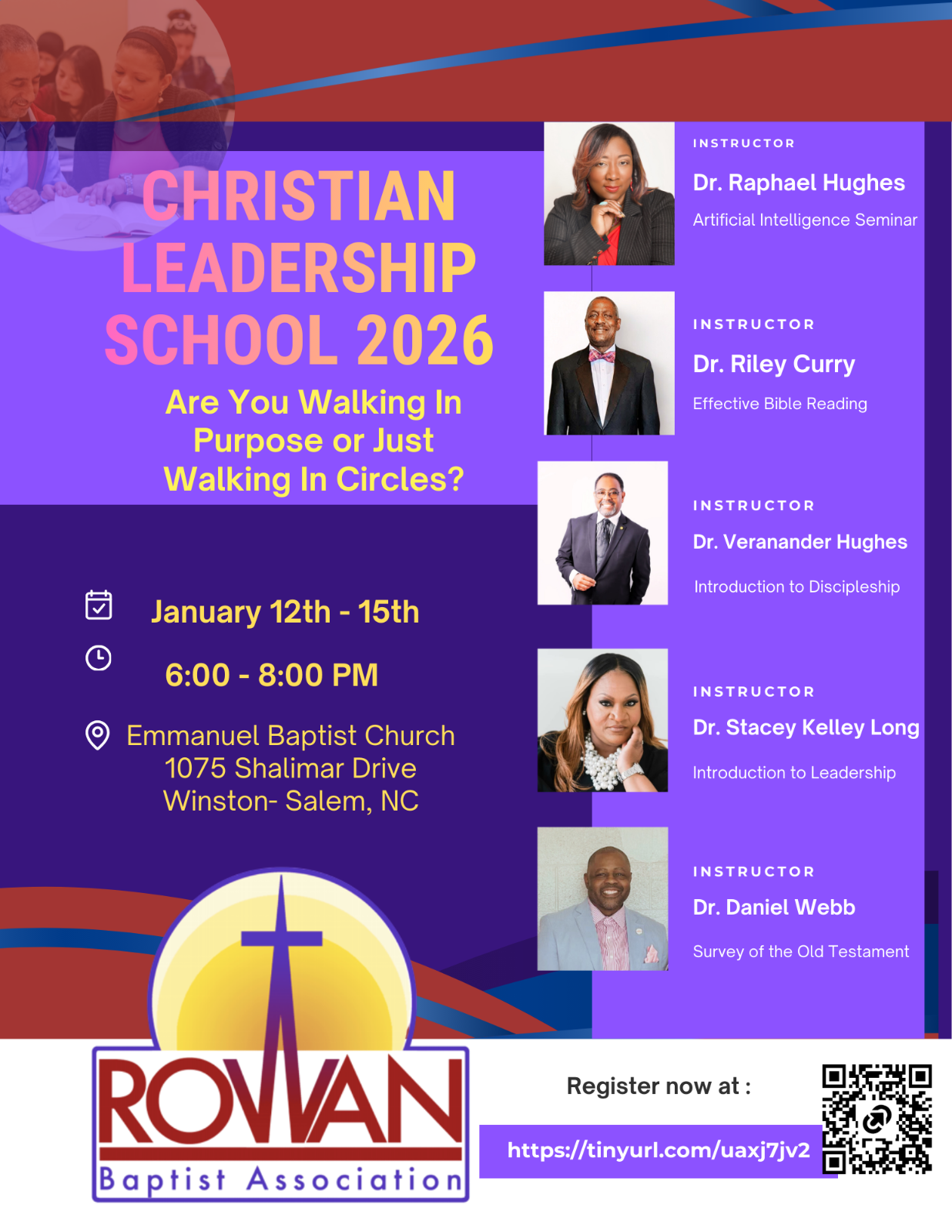 Rowan Baptist Association Christian Leadership School January 12-15, 2026; Classes will start each night at 6:00pm Emmanuel Baptist Church Winston Salem, NC Riley CurryJanuary 12, 2026 Facebook0 Twitter LinkedIn0 Reddit Tumblr 0 Likes
